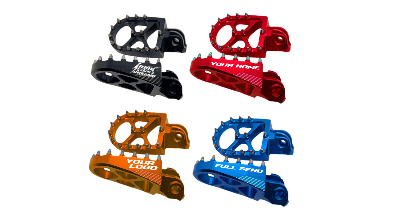 Experimenta un agarre y control increíbles con estas estriberas de aluminio CNC que elevan tu experiencia de conducción. Su acabado anodizado les da un aspecto espectacular y son más anchas que las normales, así que tus pies no se resbalarán fácilmente. ¡Prepárate para arrasar en las calles con estilo!